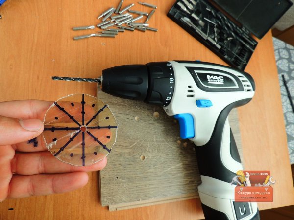 Далее нанес разметку под отверстия для бит.![]()