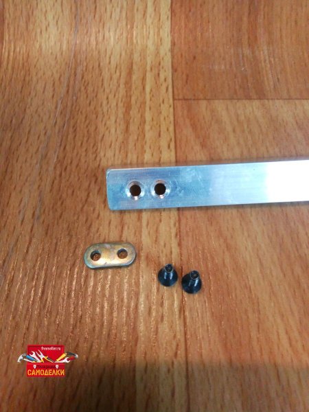 С противоположной стороны делаем петлю под крепёж. В алюминиевом уголке просверливаем два отверстия и делаем зенковку под шляпки винтов.