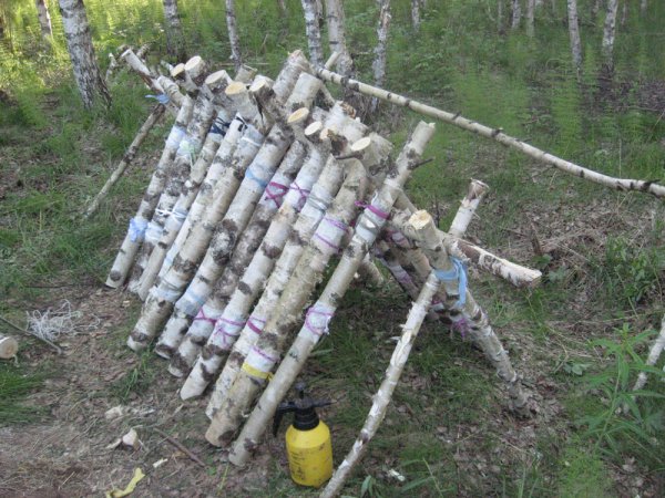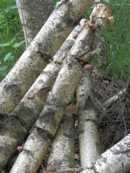 Для этого зимой заготавливаю обрезки березы диаметром примерно 8-16 см и длинной 70-100 см.