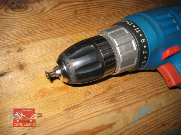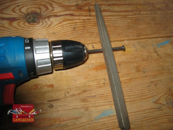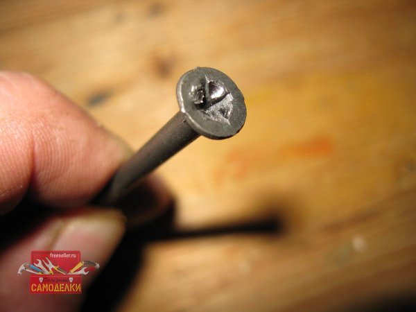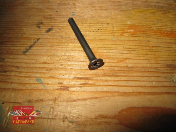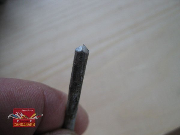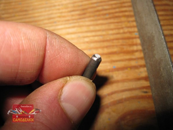 Теперь остается только отрезать резьбовую часть самореза. Это можно сделать разными способами, но я просто зажал саморез в патрон дрели и надпилил его трехгранным напильником, а затем просто отломил.