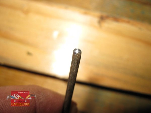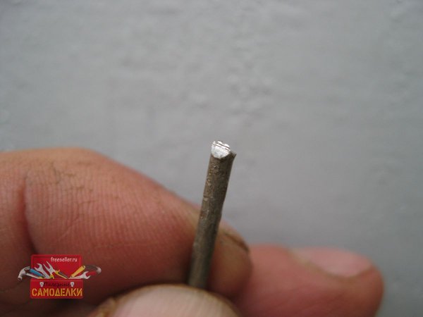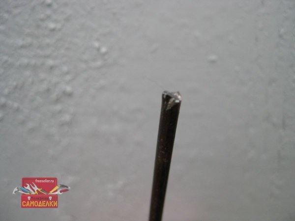 Теперь попробуем обработать кончики стальной проволоки, диаметром 3мм.Вот так выглядит один из кончиков этой проволоки до обработки.