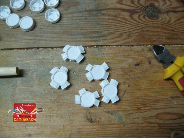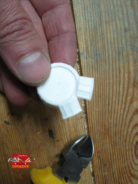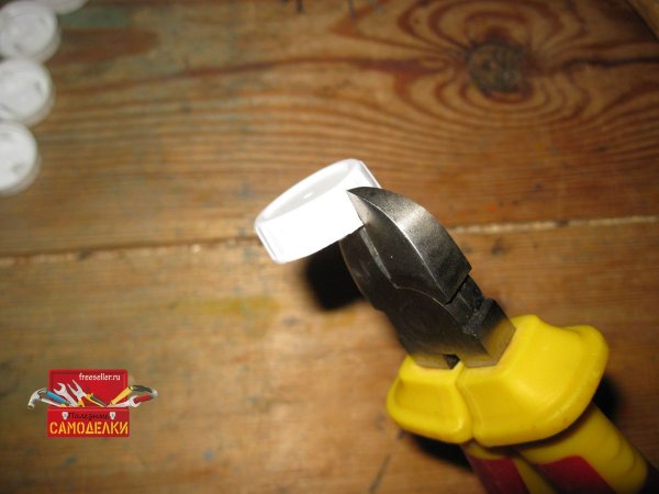 Затем приступаем к изготовлению самих «бабочек». Для этого, бокорезами делаем по три прорези с одной стороны пластиковой крышки.
