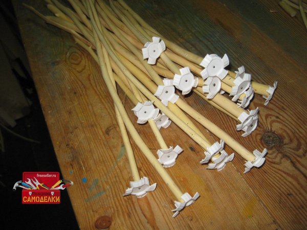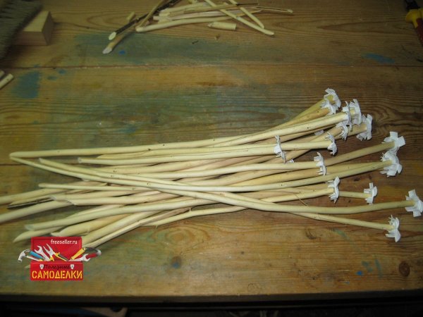 Для начала подготовим колышки. Я для этой цели, взял сухие обрезки веток, из которых заготавливались подпорки для рассады томатов. Они как раз подходят по длине (30-50 см.).