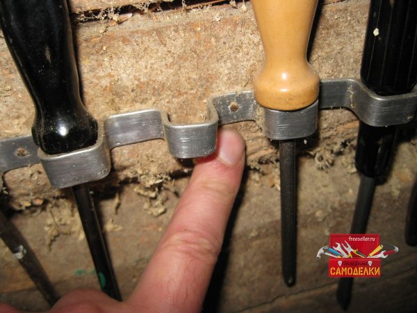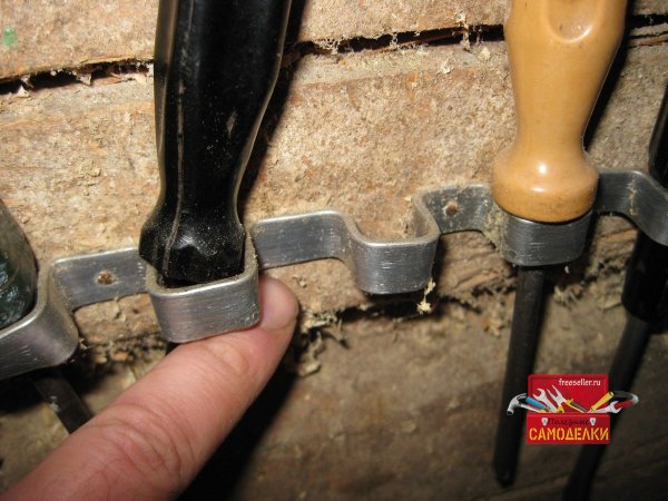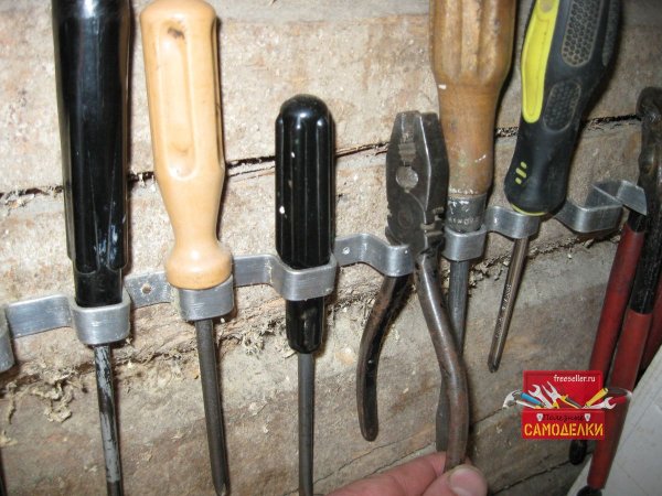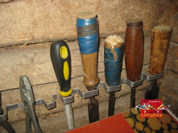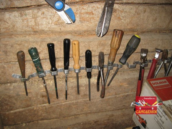Тем не менее, сейчас я решил поделиться с читателями идей такого держателя, тем более что он очень прост в изготовлении, но при этом относительно удобен и весьма функционален. Причем этот держатель подходит для многих разновидностей ручного инструмента от отверток и пассатижей до напильников, стамесок и даже молотков.