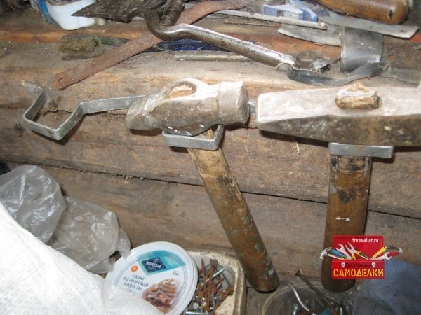 А перед самыми тисками, даже сделан такой же держатель для молотков.