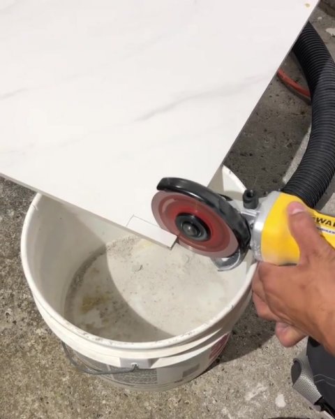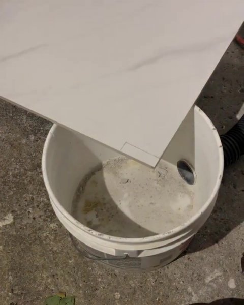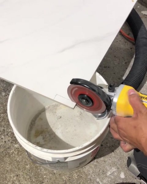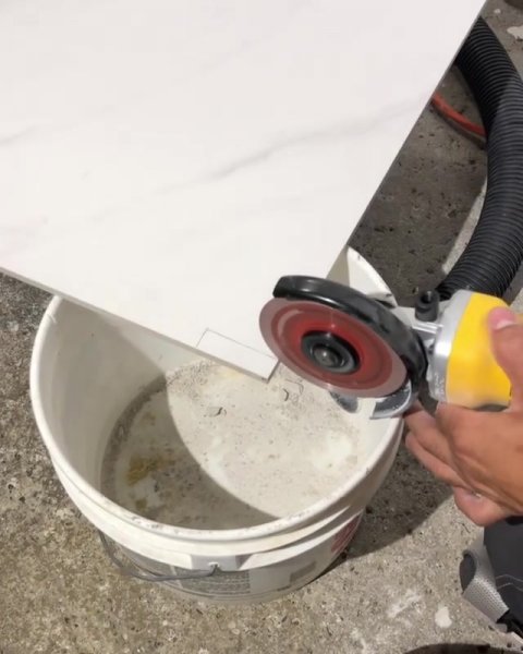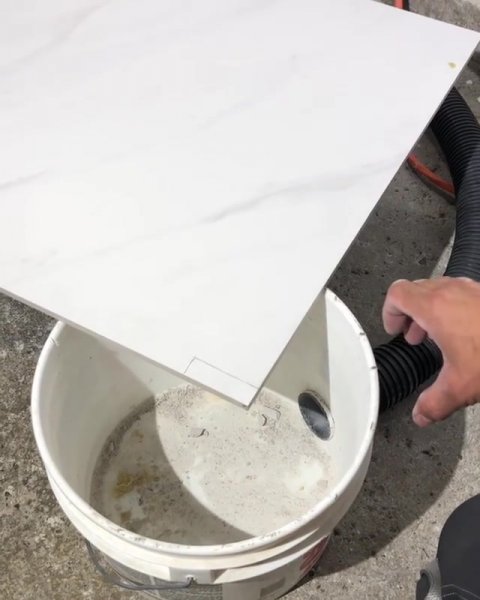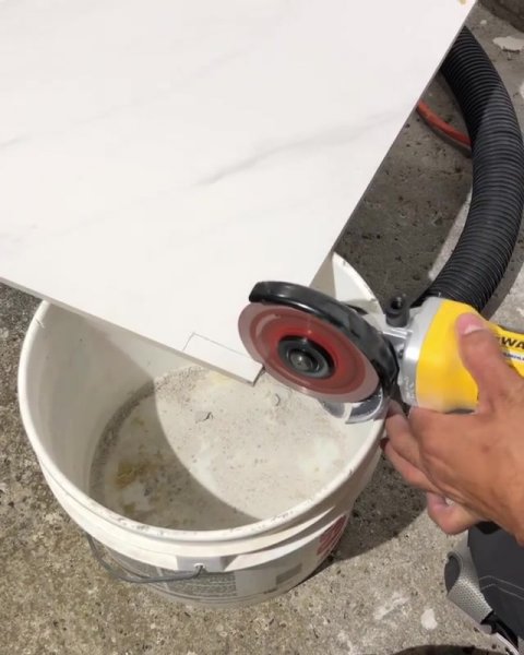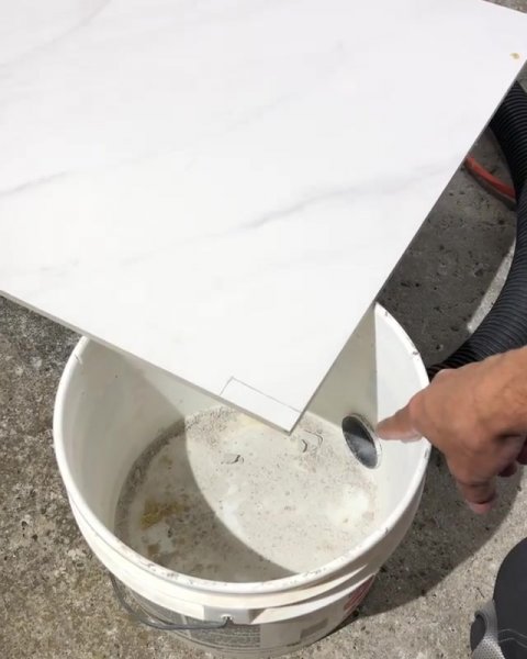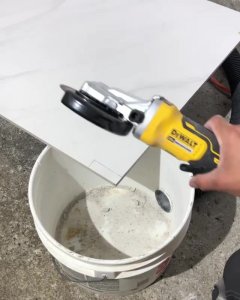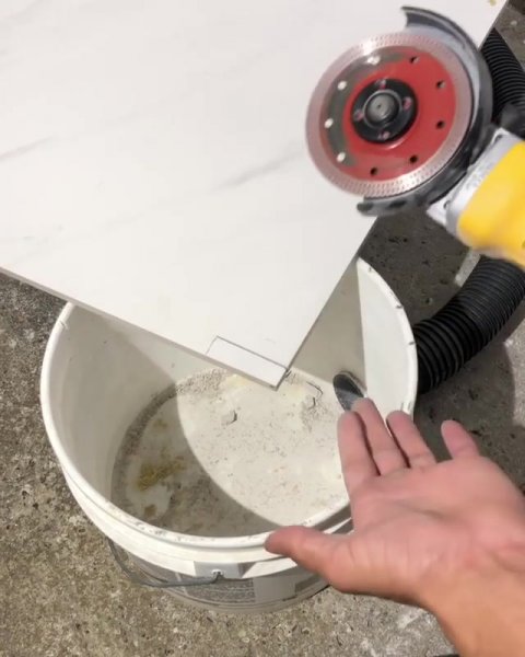 Простое приспособление для резки плитки без пыли обычной болгаркой из простого пластикового ведра.