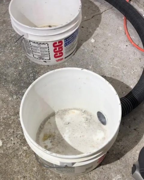 Внизу ведра сверлиться отверстие под диаметр шланга от пылесоса с небольшим припуском.![]()