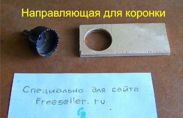 Есть правда небольшой "секрет" изготовления эксцентрика. Высверливается он корончатым сверлом из которого удалено центральное направляющее сверло. А чтобы без центрального сверла высверлить ровно и точно, в качестве направляющей используется отдельная фанерка с отверстием высверленным этой-же коронкой с центральным сверлом. Отверстие в эксцентрике высверливается в 3 - 4 мм от центра кружка. Для эксцентрика я использовал коронку диаметром 40 мм.