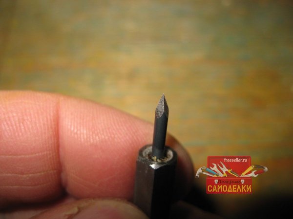 Вся работа по заточке заняла не больше минуты. Правда во время работы я периодически смачивал кончик шила водой, чтобы охладить его и не допустить прижогов.![]()