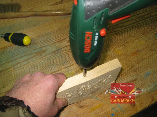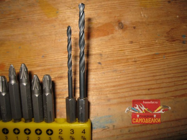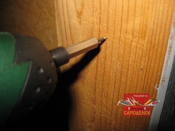Более того, со временем оказалось, что такое шило можно использовать в качестве небольшого сверла для получения мелких отверстий в древесине. Дело в том, что если эту биту с шилом вставить, например, в аккумуляторный шуруповерт, то можно быстро и легко просверлить в древесине отверстие.![]()