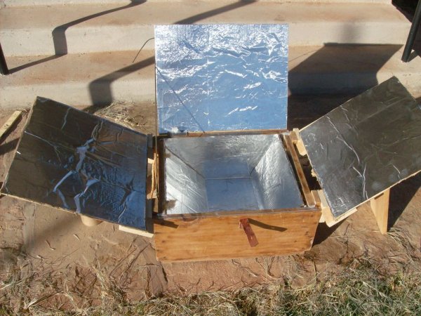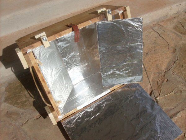 На этой фотографии у меня это настроено как типичная коробчатая плита, и это будет работать лучше всего летом, когда солнце будет выше в небе.Поскольку Солнце является более интенсивным, когда прямо над головой, не требуется даже боковые отражатели.