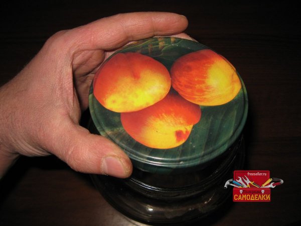 Надо сказать, что у отца есть несколько старых банок с достаточно большими по диаметру крышками, которые сейчас, наверное, уже и не выпускают.