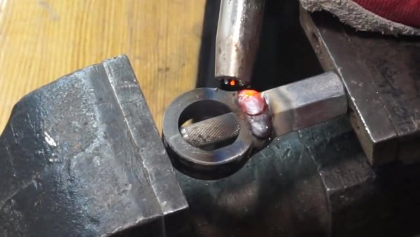 Привариваем гайку М12 к основанию наконечника так, чтобы оба отверстия совпали, для этого в отверстие гайки можно вставить шток 10 мм который сцентрирует две заготовки.