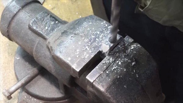Далее сверлим отверстие сверлом 10 мм по центру.