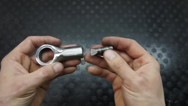 Берём ненужный наконечник рулевой тяги от легкового автомобиля и отпиливаем от него всё не нужное.