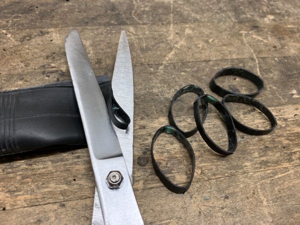 Подготавливаем из велосипедной камеры кольца.![]()