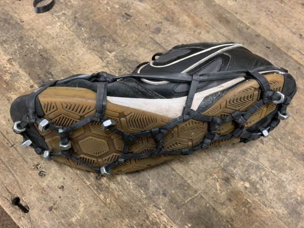 Как сделать Антискользящие накладки кошки для обуви из велосипедной камеры и гаек.