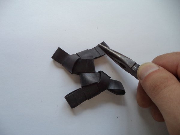 Затем добавляем еще 2 кольца и сплетаем с модулем по аналогии. Для удобства можно использовать подручный инструмент.
