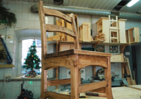 Такой простой и, в то же время, надежный деревянный стул отлично подойдет для кухни или дачи, к тому же, его можно изготовить очень быстро и без особых затрат. Весь процесс изготовления и все лайфхаки для простой работы - в видео ниже.
