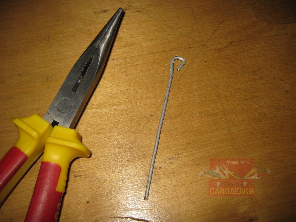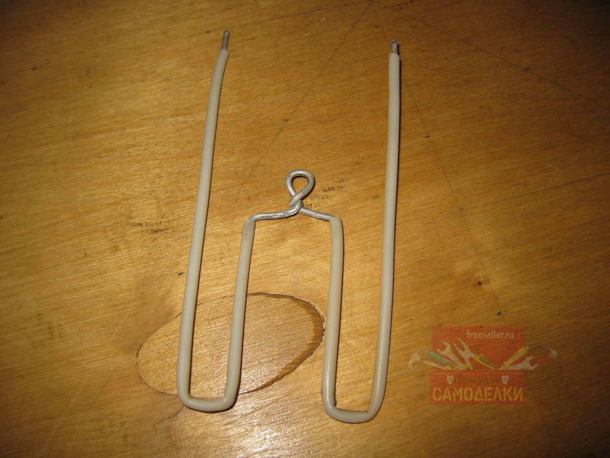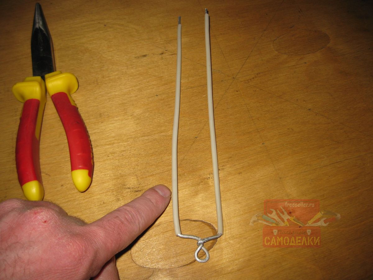 После этого, откусил еще один кусок проволоки длиной 12-15 см, и с одной стороны сформировал на нем маленькую петлю.![]()