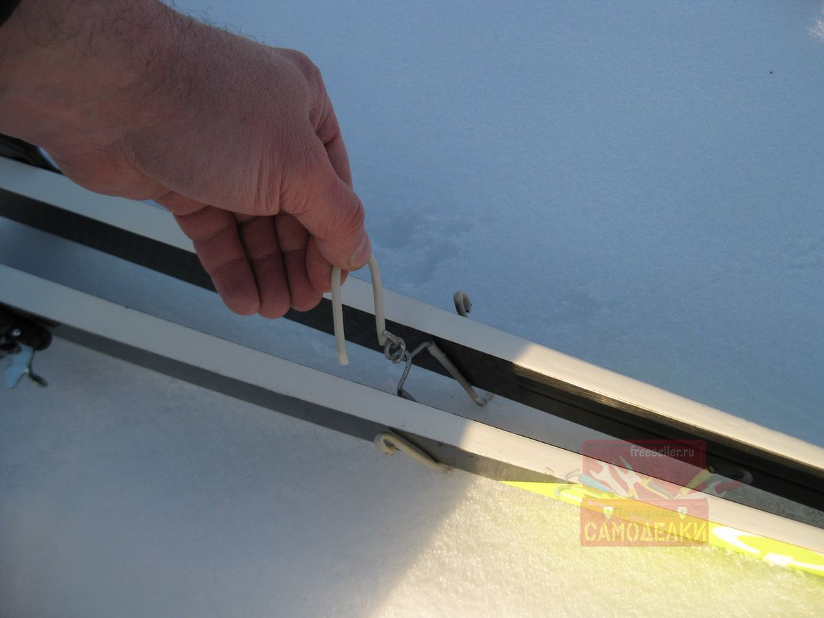 На эти концы я надел трубочки из кембрика для того, чтобы голая проволока не царапала лыжи.![]()