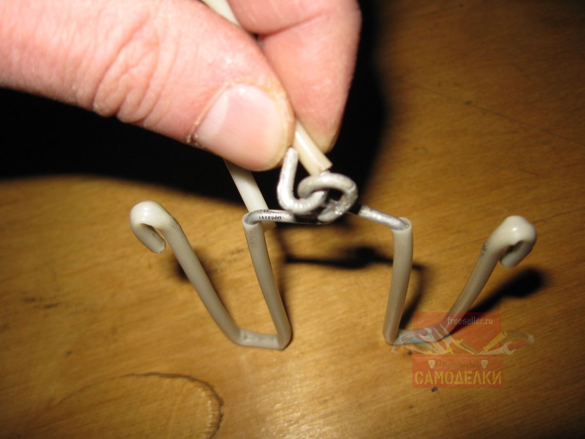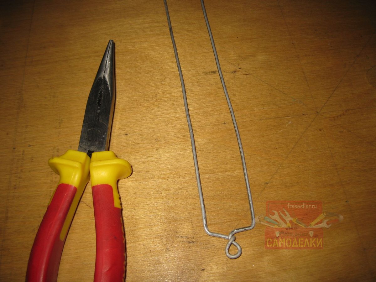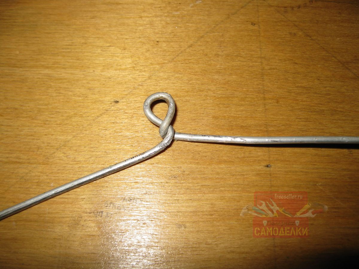 После этого, отложив 6-7 см, от места сгиба, еще раз согнул концы проволоки вот таким образом.![]()