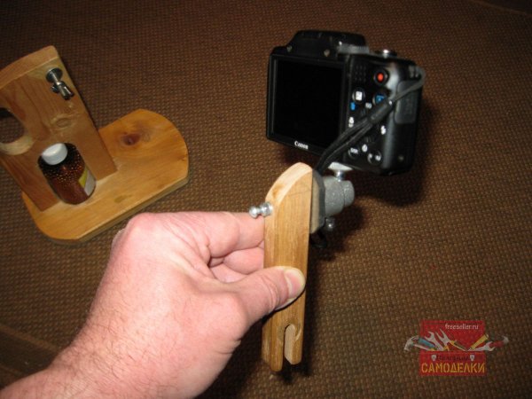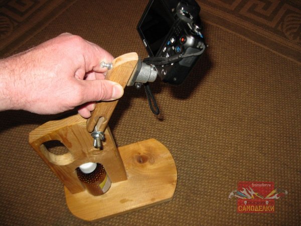 Если нужно провести макросъемку какой-либо мелкой детали самоделки на очень близком расстоянии, можно переставить болт в нижнее отверстие.