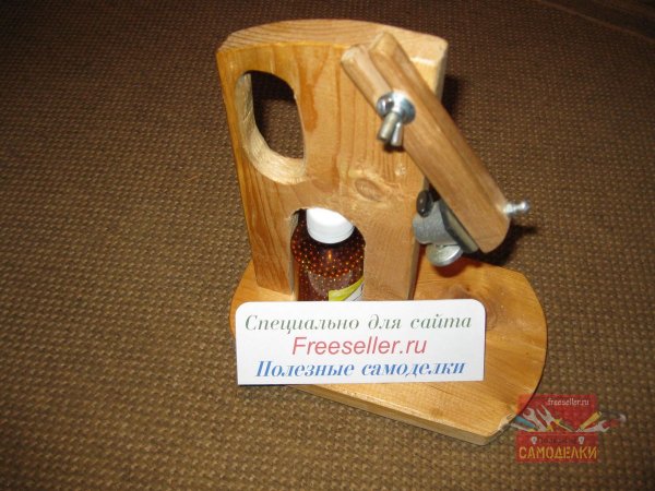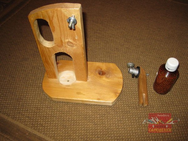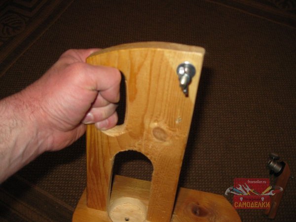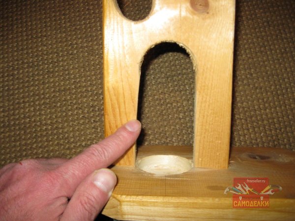 А в нижней части стойки, подобным образом, сделал вот такой паз, в который будет вставляться пластиковый пузырек с утяжелением.