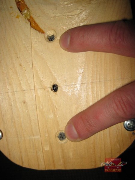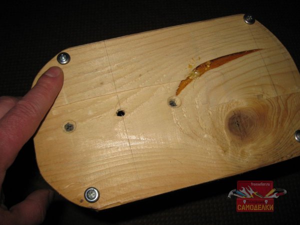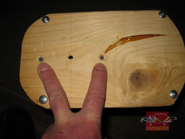 Также по углам нижней части основания, я просверлил четыре глухих отверстия диаметром 3 мм, и глубиной 15 мм, в которые затем ввернул шурупы с прессшайбой.