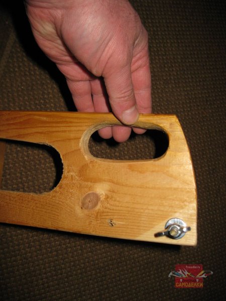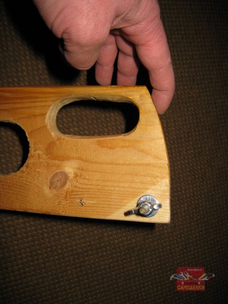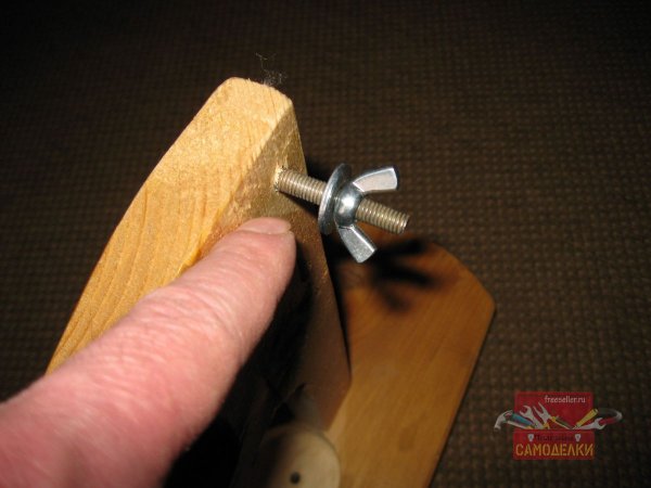 И вставил в одно из отверстий болт с шайбой и барашковой гайкой.