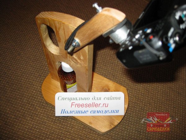 При помощи кольцевой пилы по дереву, а также электролобзика, я выпилил в верхней части стойки, вот такую рукоятку, чтобы штатив было удобно брать рукой.