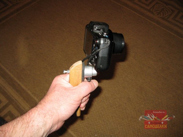 При желании, можно вообще отсоединить деталь с фотоаппаратом от штатива и вести съемку, держа ее в руке вот таким образом.