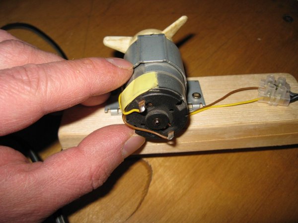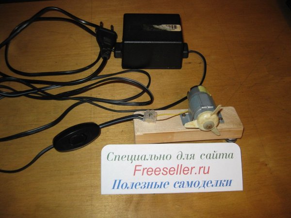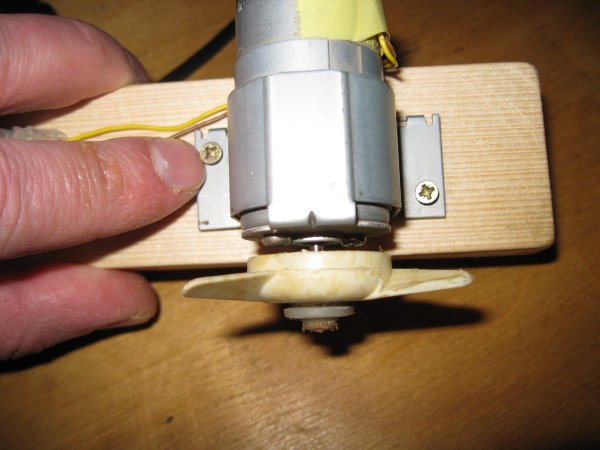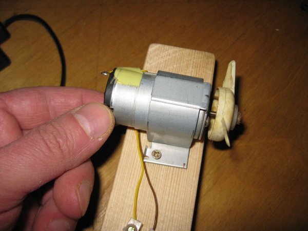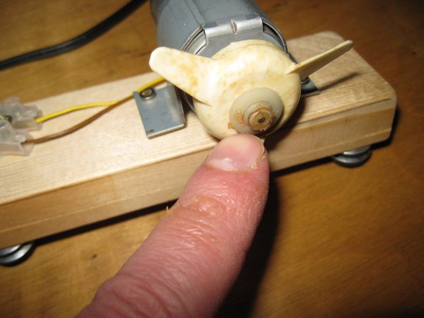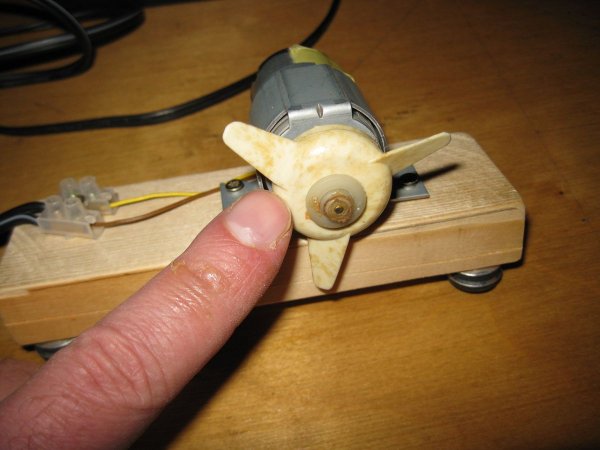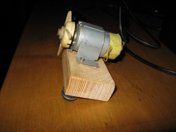 Мне, по сути, осталось лишь установить на вал двигателя подходящий пропеллер, в качестве которого я использовал крыльчатку от какого-то старого устройства (по-видимому, еще советского производства).