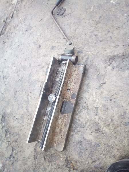 Потом была приварена профильная труба к одной стороне от домкрата, ближе к ручке (к сожалению не сфоткал) и были сделаны в трубе пропилы под гайку, чтобы труба свободно ходила.
