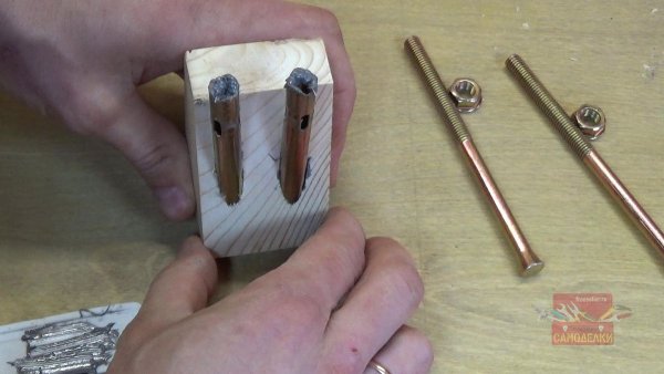 После того, как клей высохнет нужно отпилить выступающие части трубочек с низу вровень с бруском.