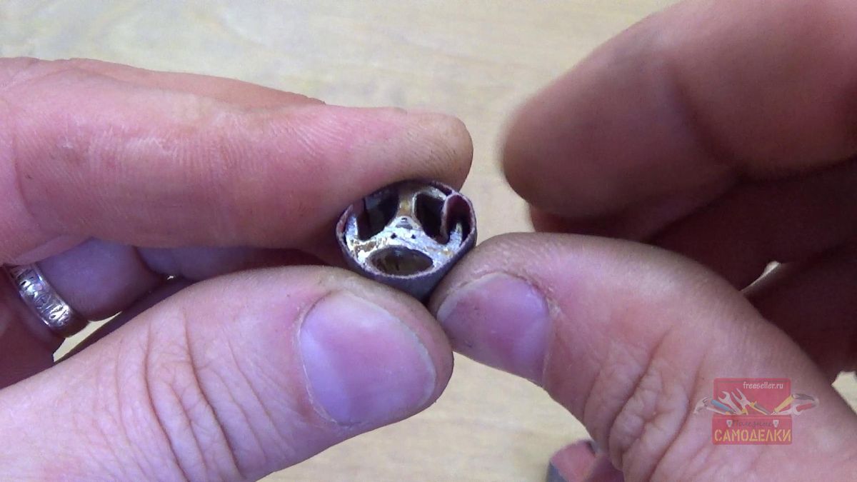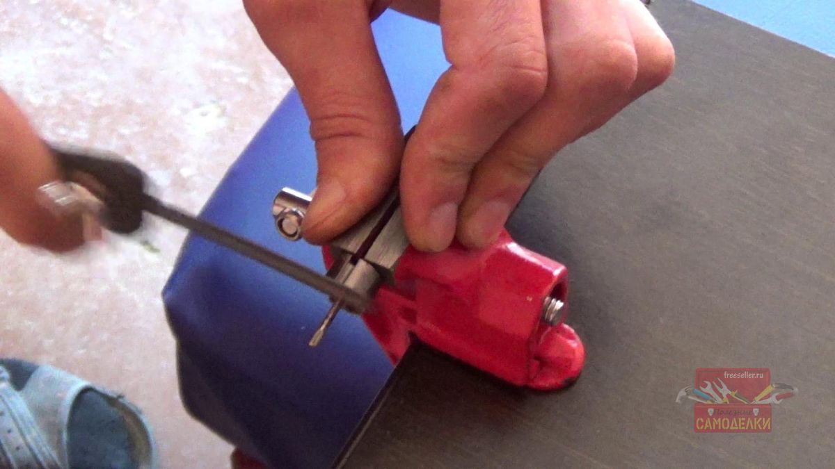 Теперь зажимаем ее в тиски и отпиливаем один из выступов, так как он будет только мешать.