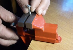Нам понадобится старый паяльник, болтик и полотно от канцелярского ножа.