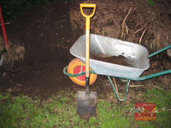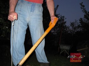 Однако эту лопату, мне не хотелось переделывать под длинный черенок, поскольку у нее есть одно важное достоинство: благодаря короткому черенку, она легко помещается в багажник автомобиля. Кроме того при некоторых видах работ, короткий черенок также оказывается весьма удобен. Например, когда приходится грузить в тачку и перевозить высокую кучу перегноя.