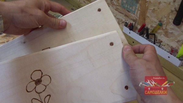 Далее необходимо просверлить по четыре отверстия в каждой доске, через которые будет пропущена веревка.