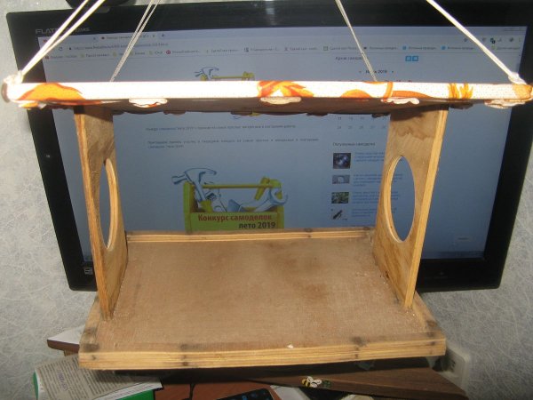К стойкам прибиваю крышу. Кормушка практически готова.