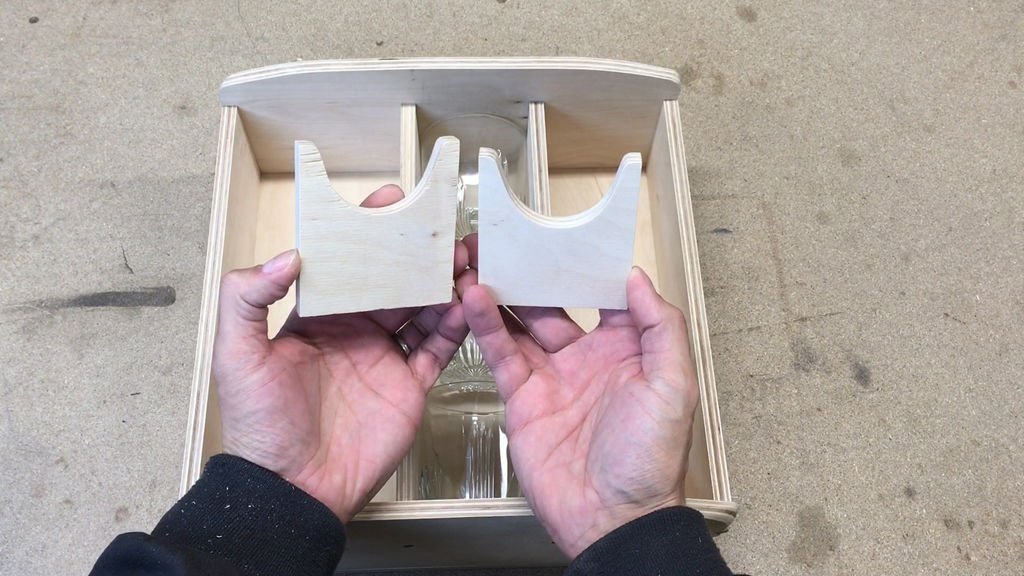 Для удобства установки стаканов, были изготовлены дополнительные перемычки из фанеры, чтобы стекло не билось друг об друга.