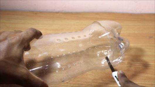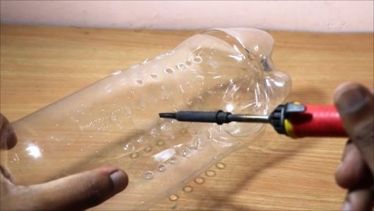 Точки, где на бутылках пупырышки, прожигаем паяльником.