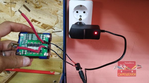 Так же припаял два силовых провода и гнездо для подзарядки. Гнездо взял от строй платы модема. Зарядка подходит от моего второго 12в шуруповерта, который уже на литиевых аккумуляторах, но если такого нет, то там же где заказываете плату, есть и зарядки. Заряжать после переделки штатной зарядкой нельзя. Предварительно все проверяю перед упаковыванием в корпус.