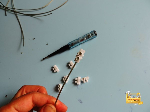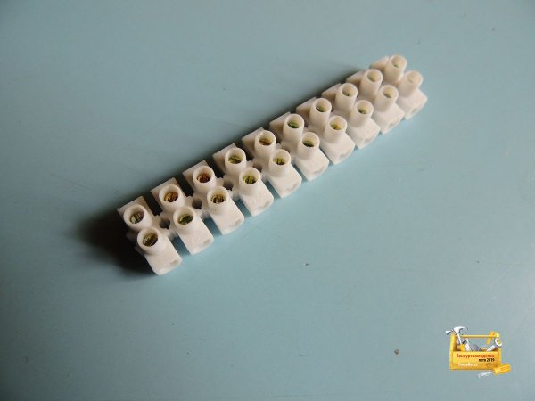 В качестве соединителя я решил использовать винтовой клеммник, так как при необходимости кольцо легко размыкалось, и шторку можно было снять и постирать.