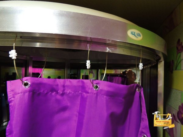 Шторка открывается и закрывается без проблем, за счет того, что крепление идет полукругом, дискомфорта нет, так как оно повторяет форму гидробокса, в общем, все довольны, думаю, вышло неплохо.