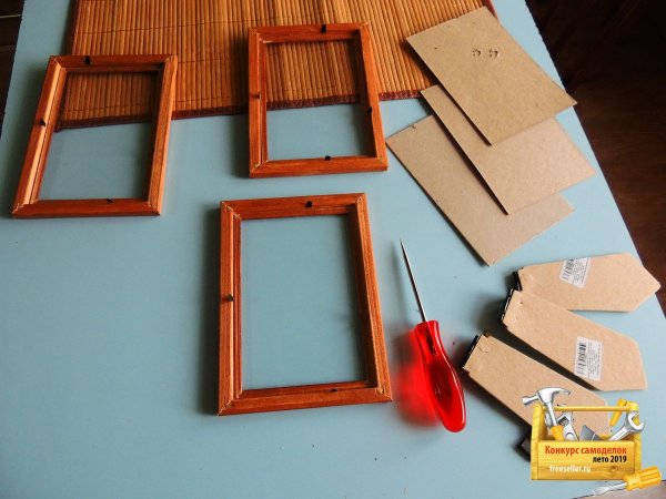 Все началось с того, что наткнулся в магазине на фоторамки и решил их купить, а также присмотрел рядом сервировочные коврики из бамбука, цена которых была не высокая и по цвету они хорошо подходили, вот я и решил совместить две эти вещи, и сделать что-то оригинальное. Смотрим, что у меня с этого вышло!