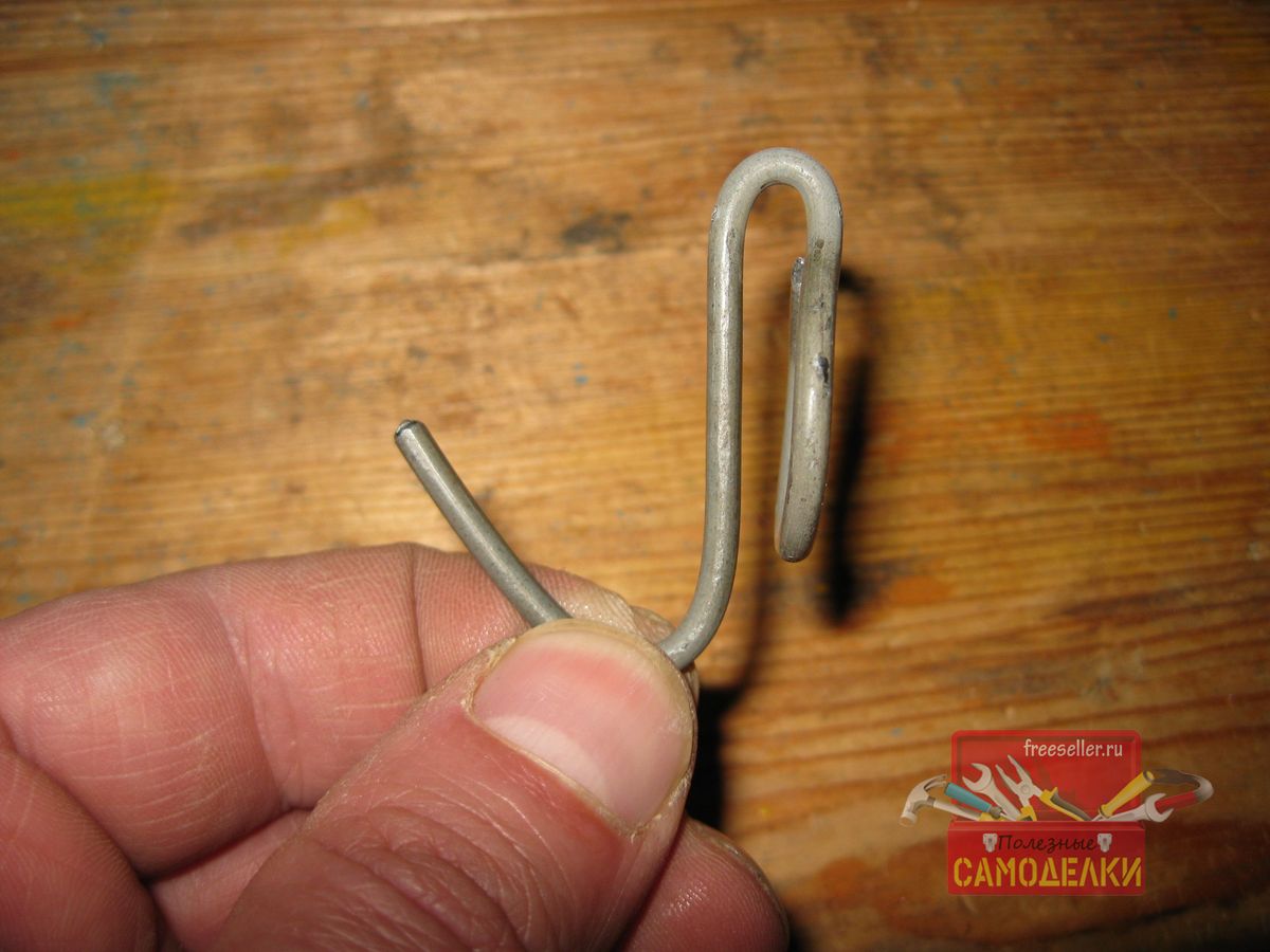 В принципе, чтобы сделать такой крючок, достаточно воспользоваться пассатижами. Я вначале так и делал. Однако в этом случае крючки получаются несколько разного размера и формы. Поэтому со временем, я сделал для этих целей специальное приспособление, на котором уже изготовил несколько практически одинаковых крючков.