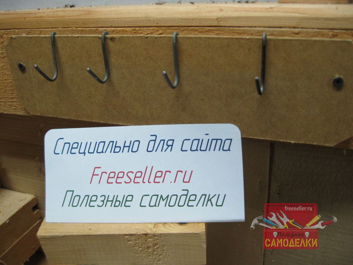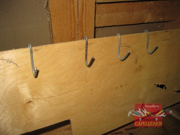 Благодаря этому, основы для установки таких крючков, можно сделать сразу в нескольких постройках, например, в гараже, в мастерской, в сараях, где хранится садовый инвентарь, дома и т.д. И во всех этих местах, использовать для развешивания инструментов одни и те же крючки, что весьма удобно.