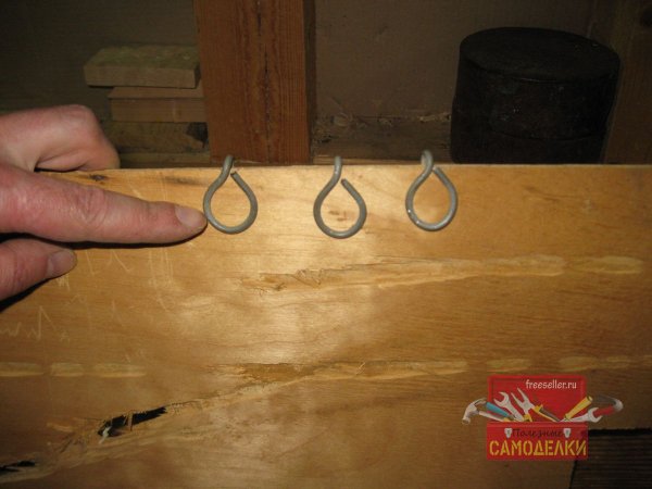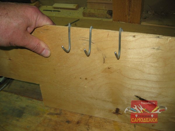 Удобные в использовании, крючки-вешалки из стальной проволоки, которые можно быстро снимать и устанавливать на основу из отрезка тонкой фанеры или оргалита.