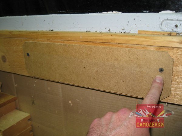 Сначала я просверлил отверстия по бокам отрезка оргалита, а затем привернул его шурупами к стене.